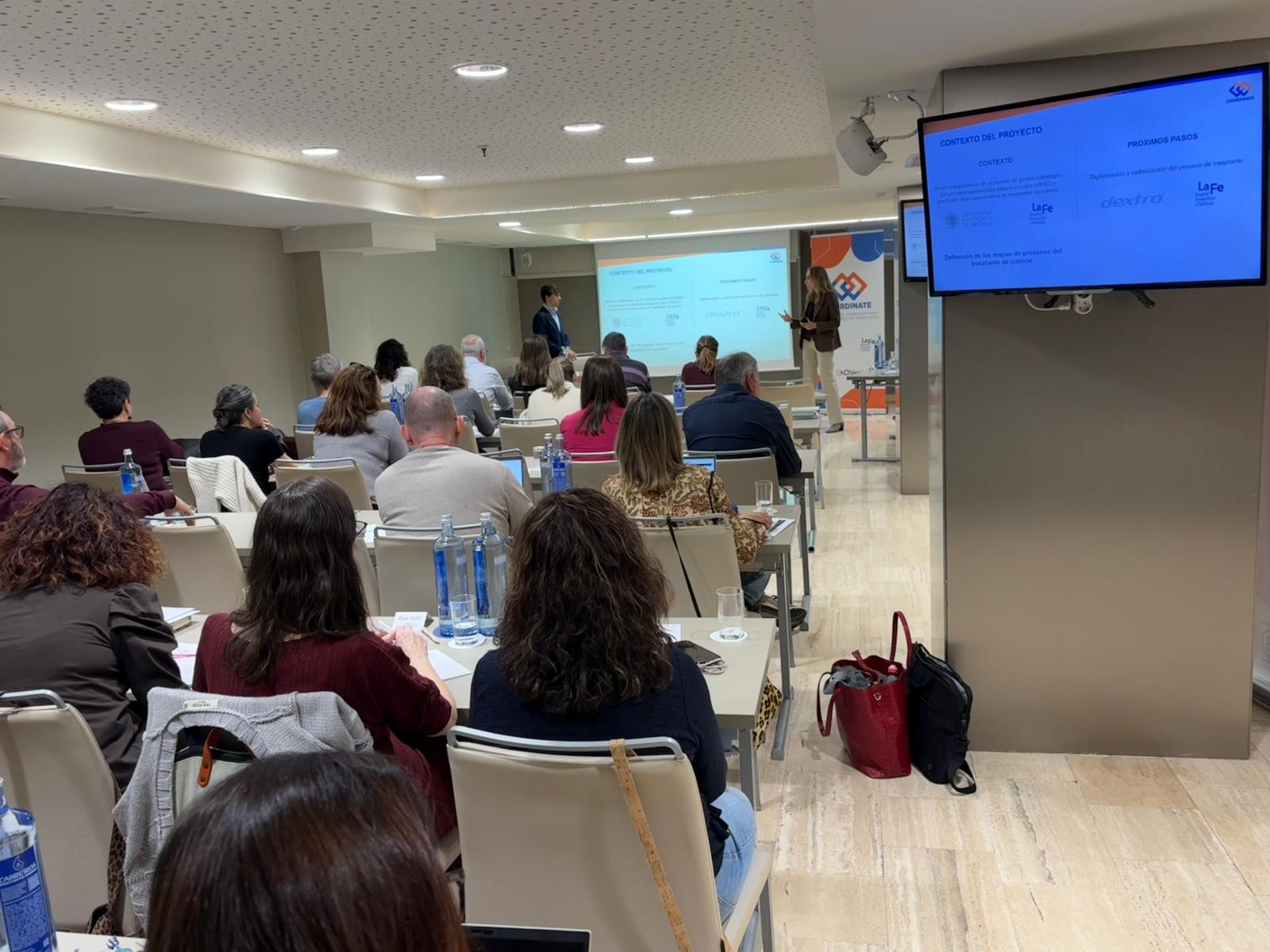 Durante la ponencia titulada “Tecnología y digitalización en Coordinación de Trasplantes”, Carla Parra y Alejandro Andani, presentaron el proyecto que Dextromedica está desarrollando con el Hospital La Fe, centro de referencia nacional e internacional en trasplantes.